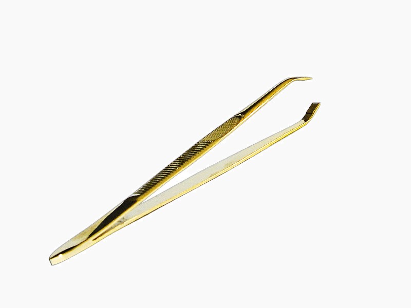 La pince à épiler chromée mors en crabe est disponible en version dorée ou en version argentée.